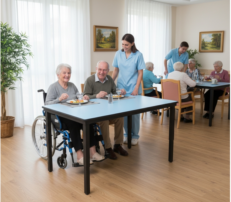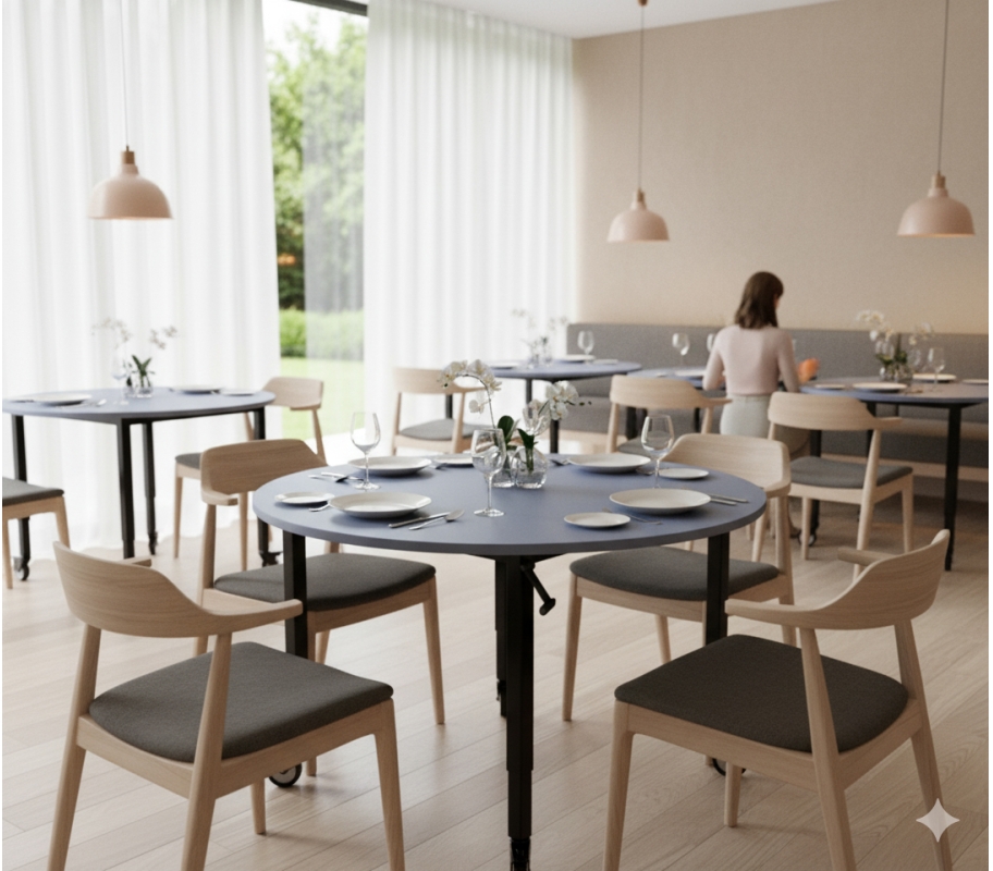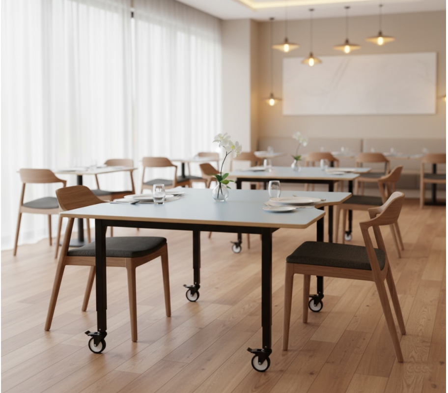 La Table 4 Pieds X2 est une table polyvalente et robuste, conçue pour les environnements professionnels comme les EHPAD, les collectivités ou les établissements de santé. Elle se distingue par sa hauteur réglable en continu, sa stabilité et ses options de personnalisation.