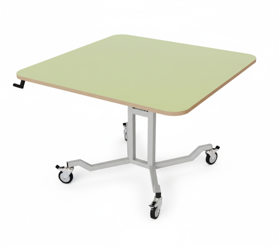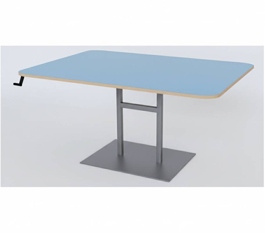 - Mécanisme de réglage : Système manuel avec une manivelle amovible discrète, permettant un réglage précis sans effort. La manivelle se fixe sous le plateau pour un rangement pratique.