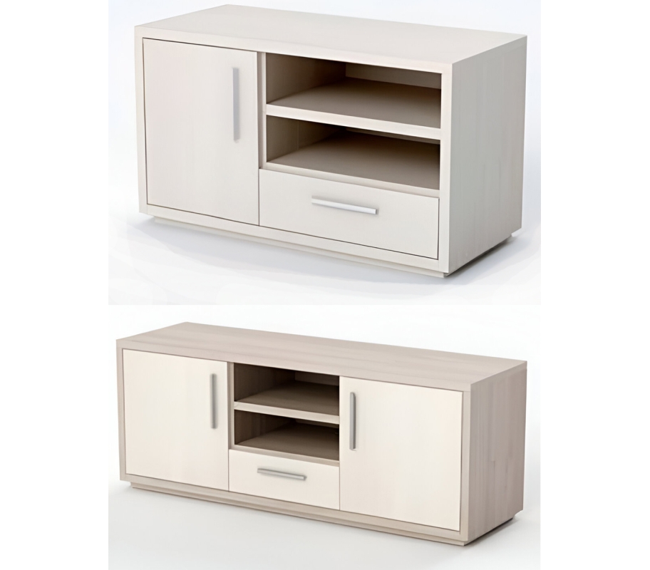 Composition interne : 2 portes, 1 tiroir et 1 tablette.