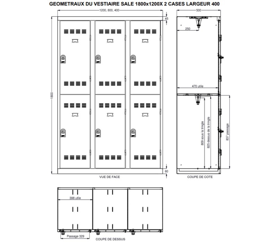 Le niveau de résistance à l'effraction est le plus élevé possible : Classe C selon la norme NF D 65-760 partie 2. Cela signifie que le vestiaire résiste à une traction supérieure à 70 kg et aux tentatives d'ouverture forcée avec outils.