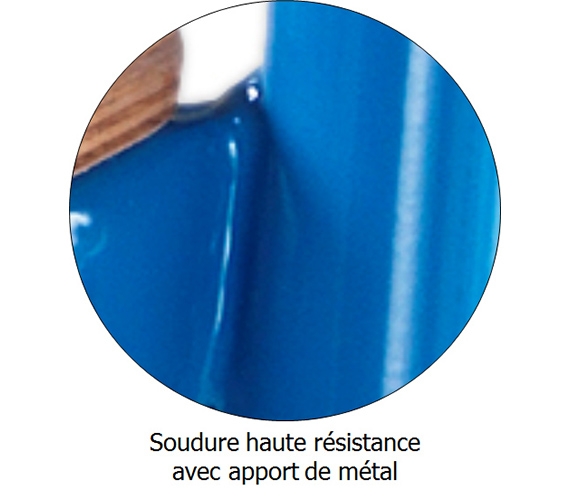 Piètement en tube de diamètre 25, épaisseur: 1.5 mm HLE; revêtu époxy. L'utilisation du tube HLE (Haute Limite d‘Elasticité); permet d’alléger la chaise et de réduire son énergie spécifique de 20%, tout en conservant les performances d’un acier ordinaire.